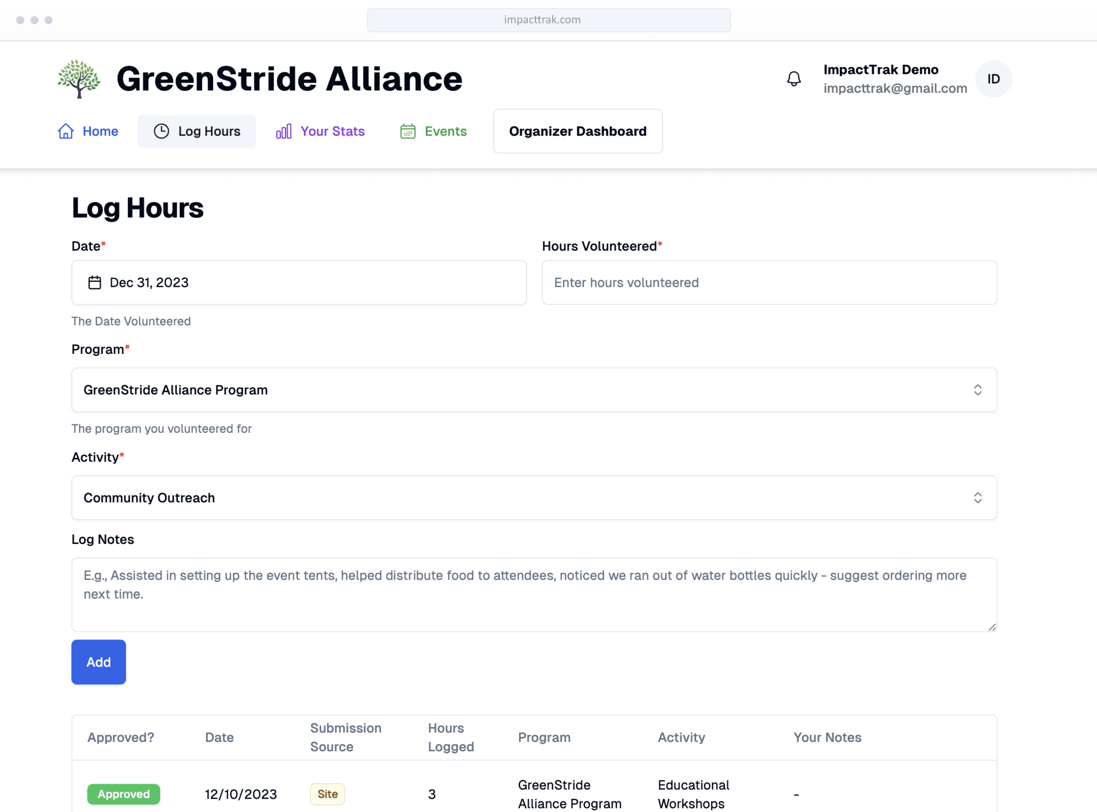 ImpactTrak is the easiest way to manage, engage, and mobilize volunteers. Elevate your impact with a tool that understands the heart of volunteerism – making a difference has never been easier.